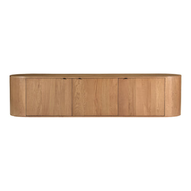 Let your media setup finally match your style. The Theo media bench brings sculptural curves and natural oak warmth to your living space—or your entryway. With three soft-close doors hiding a single long shelf, it’s made for easy storage and clean lines. Crafted from solid oak with natural wood variation, it features magnetic door catches and built-in cable management for a setup that’s as functional as it is beautiful. Equal parts form and function—wherever you place it.