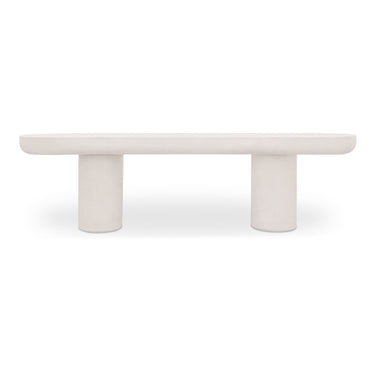 Made from fiber-reinforced natural concrete with a cream finish and set in a sturdy iron frame, the Rocca indoor/outdoor collection's elemental design places material and forms center stage. Featuring a monolithic contemporary look, this bench’s supportive pillars and slab seat serve for both drama and comfort. Perfect for pairing with plants and accent pieces, combine this table with other pieces from the Rocca collection for the full effect. Please read through the care instructions below to fully enjoy the beauty of this collection for years to come.
