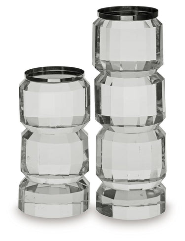 Elegante y moderno. Combinando cristal con detalles metálicos plateados, este juego de candelabros brilla con una sofisticación exquisita. Es perfecto para tu gusto por el diseño contemporáneo.