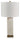 - Realizada en alabastro blanco y resina con metal; pantalla de tela de tapa dura tipo tambor.