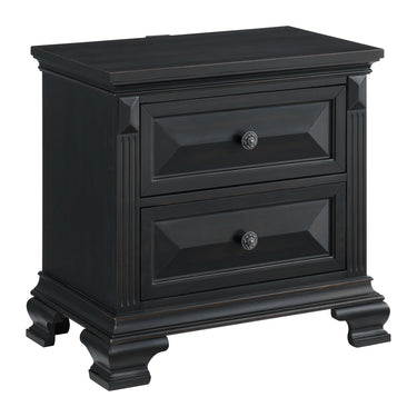 Bridgestone - Mesita de noche de 2 cajones con USB - Negra