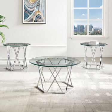 Escondido - 3 Piece Glass Top Table Set - Silver