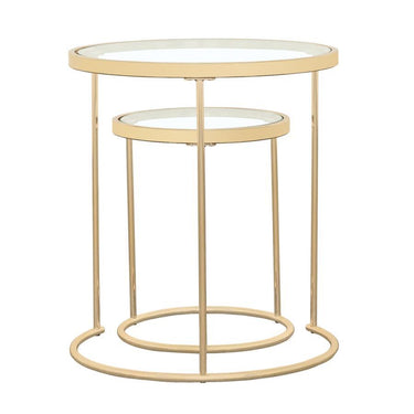 - Elige este juego de dos mesas nido de oro y cristal para tu decoración moderna.