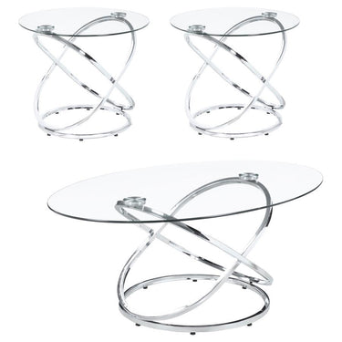 Warren - 3 Piece Oval Glass Top Coffee Table Set - Chrome